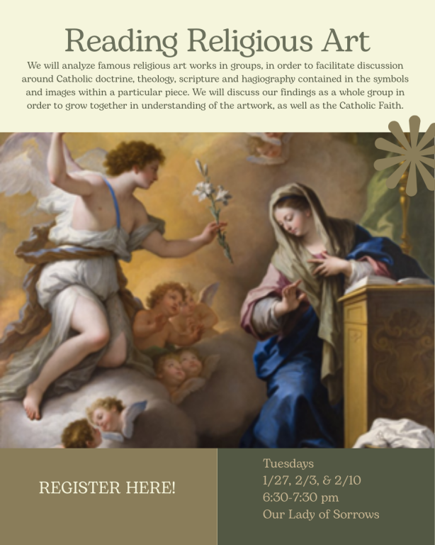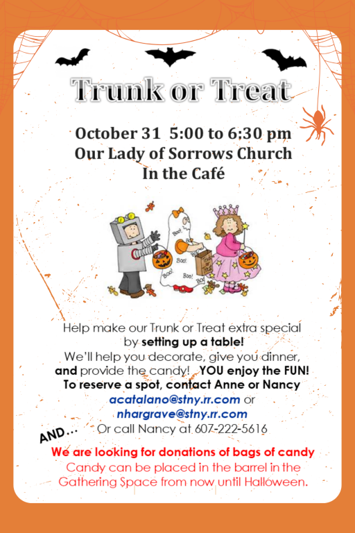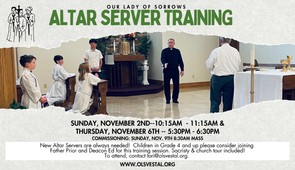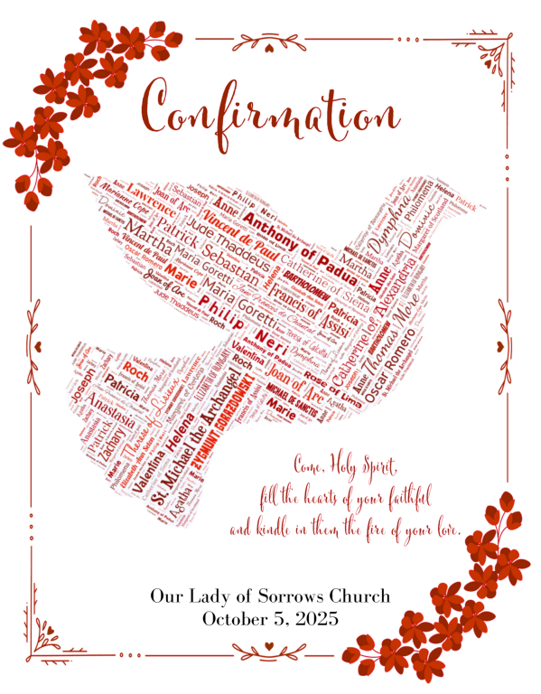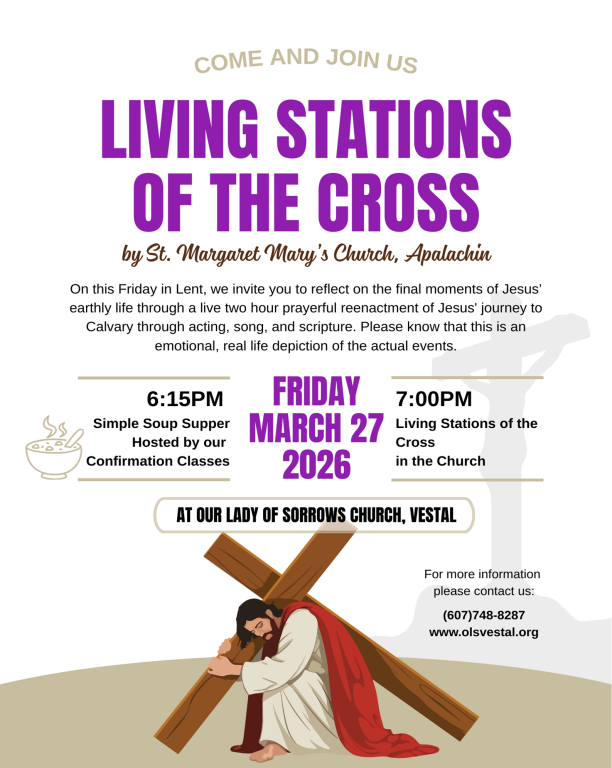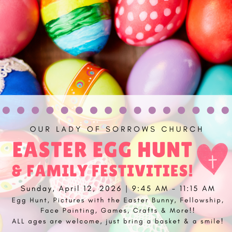 WELCOME! Christ welcomed all who were searching for truth, peace and joy! We, the Roman Catholic faith community of Our Lady of Sorrows welcomes all people to come and find truth and peace within our walls. A joy filled community based on Sacred Scripture, Tradition, and the Sacraments seeks to provide an inviting and spiritually fulfilling faith journey for all who seek a deeper, truth filled relationship with the risen Christ. We sincerely hope to offer hospitality and friendship to everyone in the name of Christ our Savior. Please come join us!