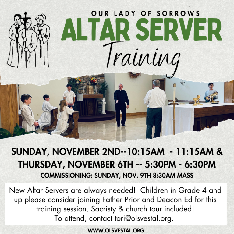 Thursday, Nov. 6th: Altar Server Training #2, 5:30 -6:30pm